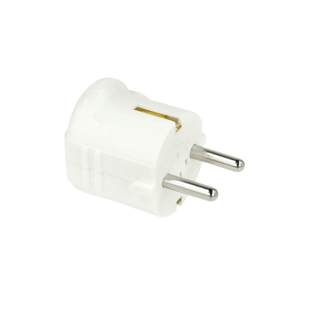 Der Schutzkontakt-Winkelstecker in kleiner Ausführung besteht aus bruchfestem Kunststoff. Er ist mit einer Zugentlastung ausgestattet und bietet einen doppelten Schutzkontakt.