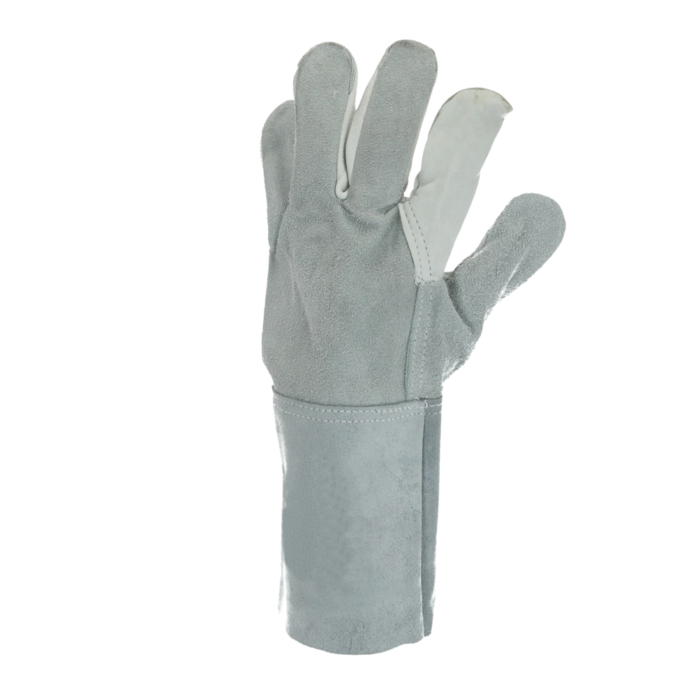 Alle ProduktinformationenRindvollleder-Handschuh mit Spaltleder-Handrücken und Spaltleder-Stulpe - 35 cm lang. Das Produkt ist der gängigste und universellste Schweißerhandschuh in Deutschland. Geeignet für Entgraten, Schweißen, Flexen sowie allgemeine Arbeiten, wo robuste und widerstandsfähige Handschuhe gefordert sind.