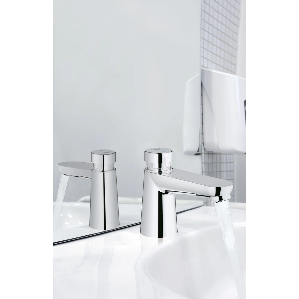 Das Selbstschluss-Standventil wird für kaltes und vorgemischtes Wasser genutzt. Die Armatur ist ausgestattet mit der GROHE EcoJoy® Technologie für Wasser in Perfektion bei reduziertem Verbrauch, der GROHE StarLight® Chromoberfläche und mit Markierung in blau oder rot.