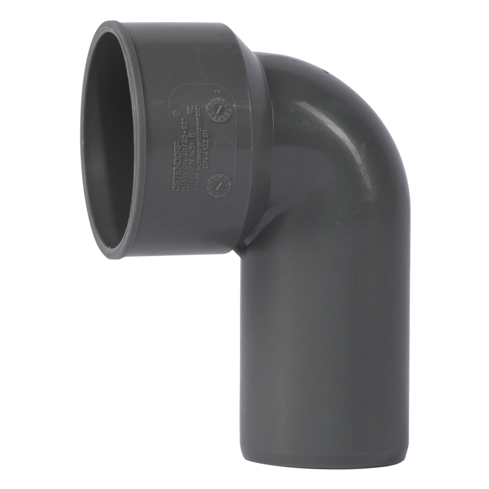 HTsafe-Siphonbogen aus schwer entflammbarem PP-H nach DIN 4102 (B1) mit einseitiger Muffe zum Einstecken des Siphongummi´s für die Abwasserleitung innerhalb von Gebäuden nach DIN EN 1451. Der Bogen ist für heiße, kalte und aggressive Abwässer sowie für Zentralstaubsaugeranlagen geeignet.