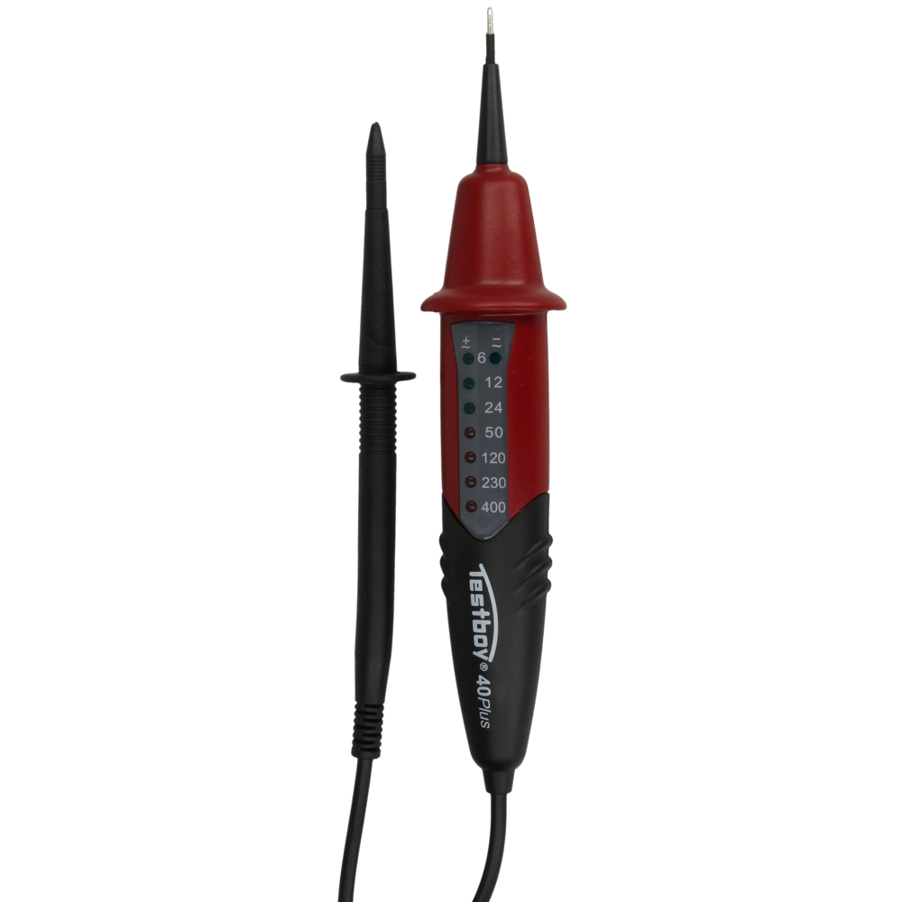 Mit dem Testboy prüfen Sie zuverlässig die Gleich- und Wechselspannung an spannungsführenden Bauteilen. Er ist auch geeignet für die Phasensuche gegen den Schutzleiter. Die Diodenanzeige ist unterteilt in 6, 12, 24, 50, 120, 230 und 400 V.