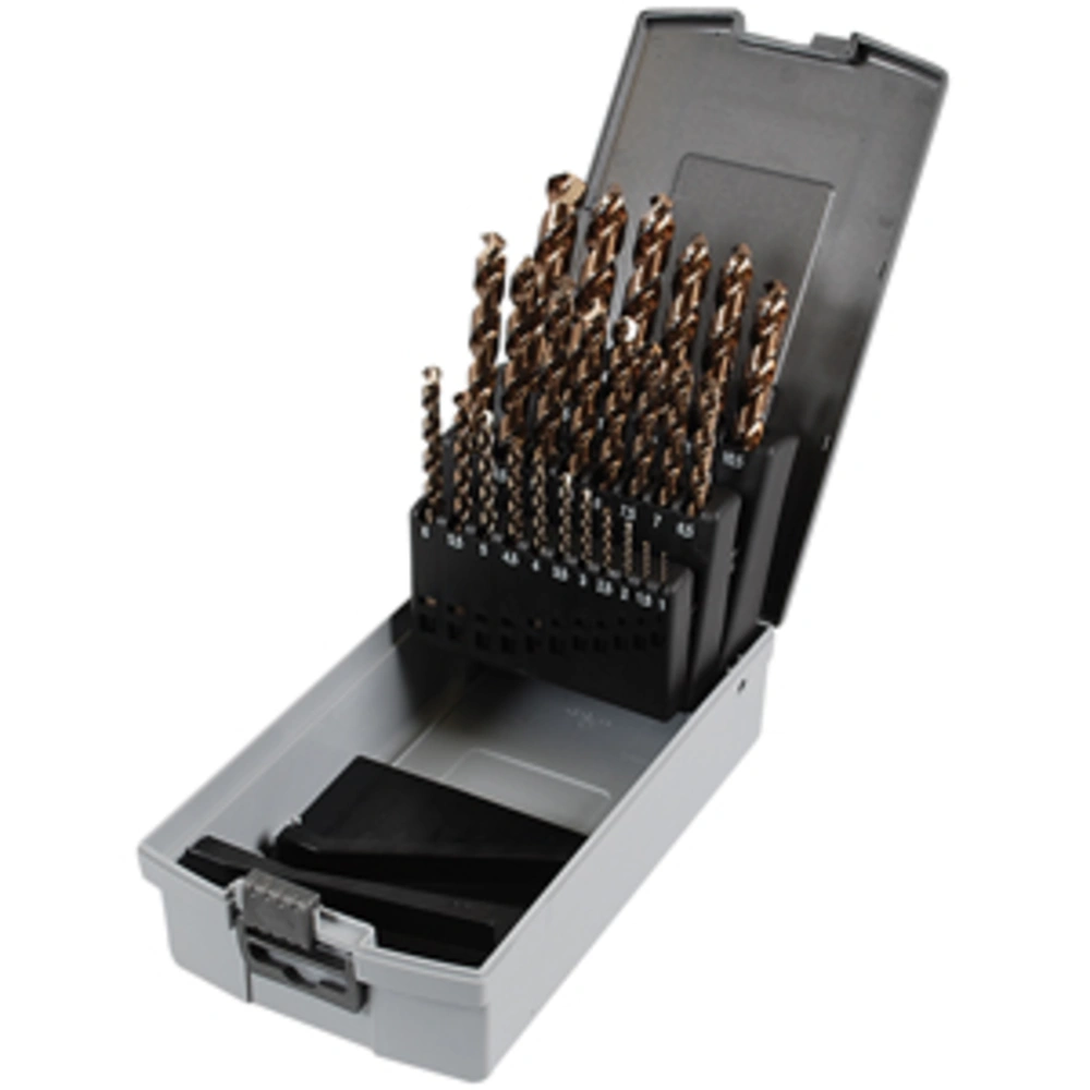 25-teiliger Spiralbohrersatz in Kunststoffkassette für den Einsatz in Bohrmaschinen und Akku-Bohrschraubern.