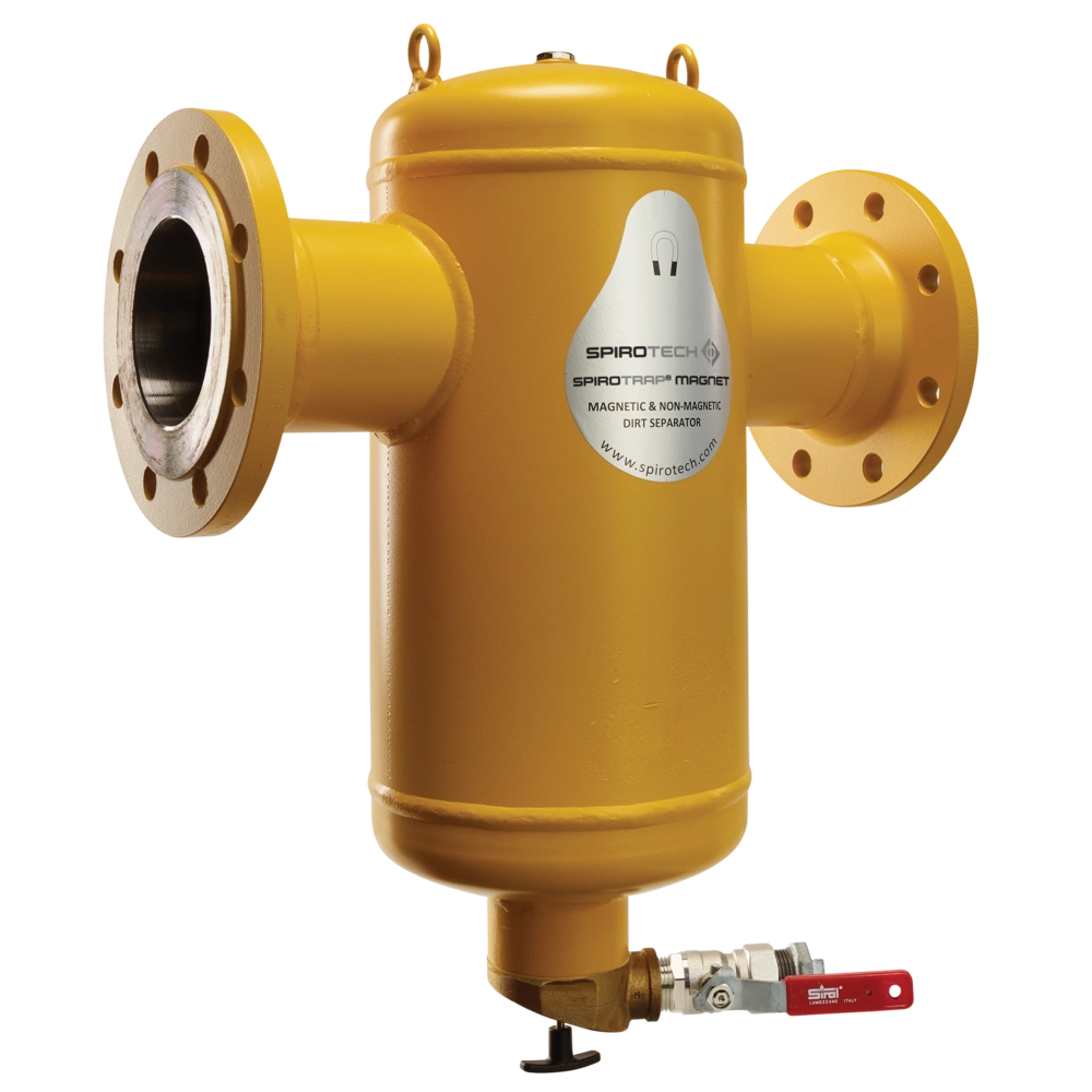 Effektiver Schlammabscheider zur Entfernung von magnetischen und nicht magnetischen Schlammpartikeln aus Heizungsanlagen. Der Magnet mit der besonderen Magnetfeldverstärkungstechnologie erzeugt ein stark vergrößertes magnetisches Feld und richtet die Magnetkraft deutlich nach innen. Schmutzpartikel werden effektiv ausgespült, während die Anlage läuft. Zusätzlich zeichnet sich der SpiroTrap durch das spezielle Spirorohr® für eine optimale Abscheidung der Partikel und eine große Auffangkapazität aus. Die Pumpe und Anlagenteile werden so wirkungsvoll geschützt. Der Einbau des SpiroTrap sollte horizontal an der heißesten Stelle des jeweiligen Systems erfolgen.
