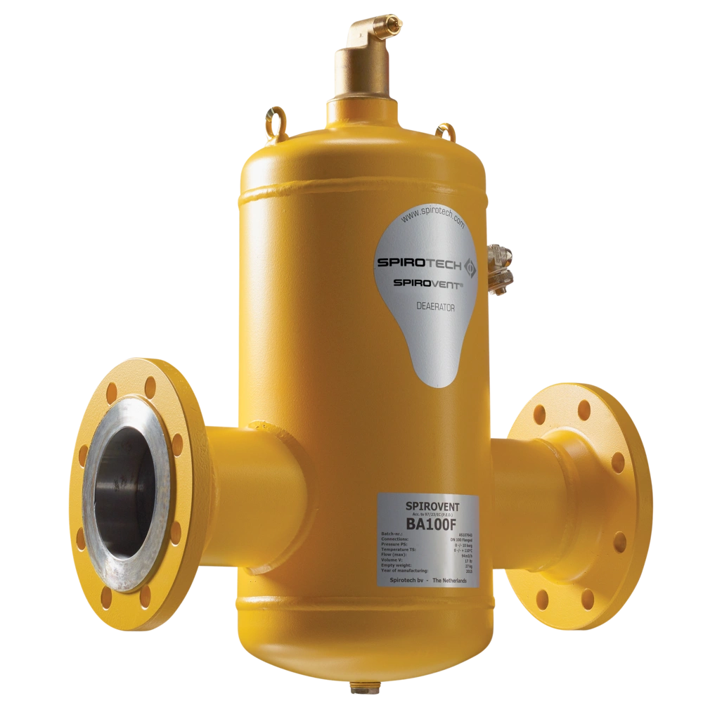 Luftabscheider für die zuverlässige Entfernung von feinsten Luftbläschen in Heizungs-, Kühl- und Prozessanlagen. Durch das spezielle, mit Kupferdrahtgeflecht ummantelte Spirorohr® werden selbst kleinste Luftbläschen im Hauptstrom gebremst und steigen auf. Die so abgeschiedene Luft wird über das automatische, leckfreie Ventil nach außen abgeführt. Dadurch entsteht eine völlig mikroblasenfreie Zirkulation in der Anlage, womit eine einwandfreie Funktion ohne Wartung, manuelles Entlüften und störende Geräusche gewährleistet wird. Der Einbau des SpiroVent sollte horizontal an der heißesten Stelle des jeweiligen Systems erfolgen.