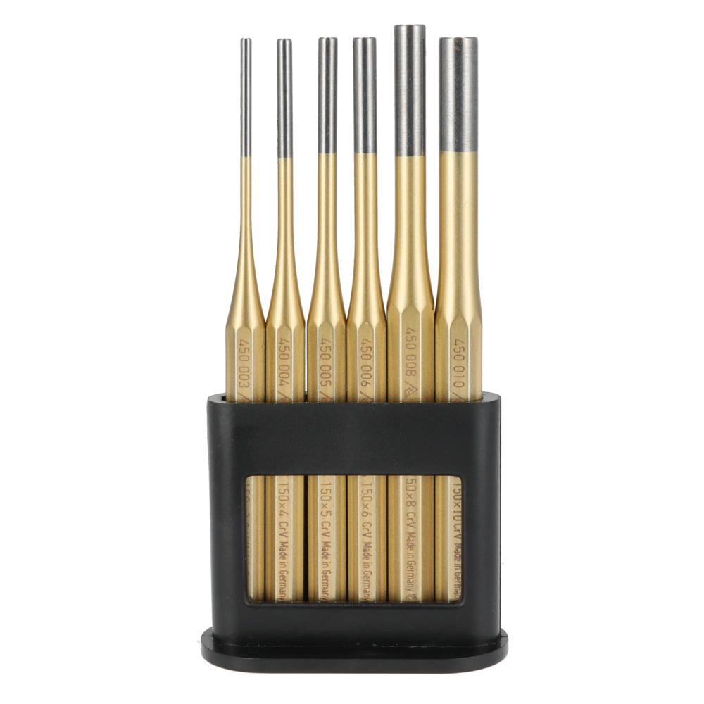 Alle Produktinformationen LieferumfangSplintentreiber-Set zum Entfernen oder präzisen Versenken von Bolzen, Nieten, Splinten und Verbindungselementen in Durchgangsbohrungen. Die Splintentreiber aus hochlegiertem Werkzeugstahl besitzen einen speziellen Sicherheitsschlagkopf, der Absplitterungen oder Deformationen verhindert. Der 8-kantige Griff ermöglicht ein sicheres, einfaches Arbeiten.