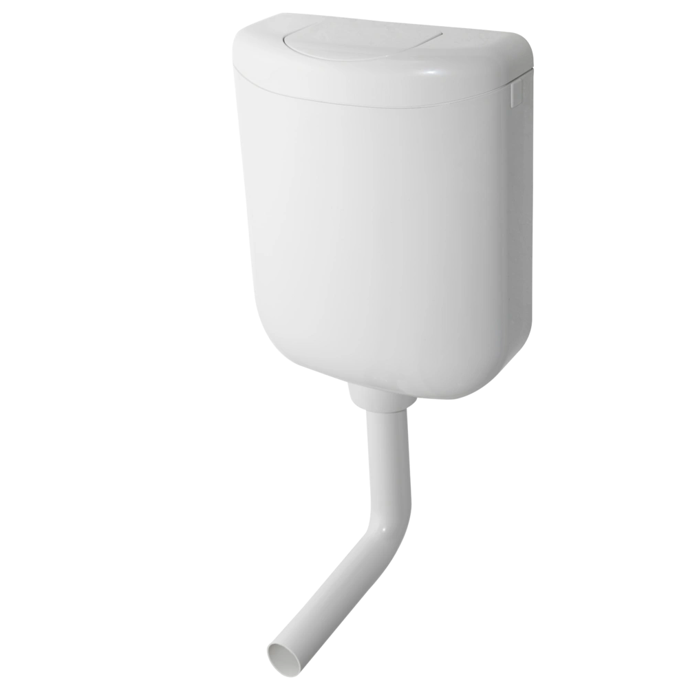 Aufputz-Spülkasten mit einer Spülmenge von 6 Litern und Spül-Stopp-Funktion. Der Spülkasten ist dreiseitig anschließbar und schwitzwassergedämmt.