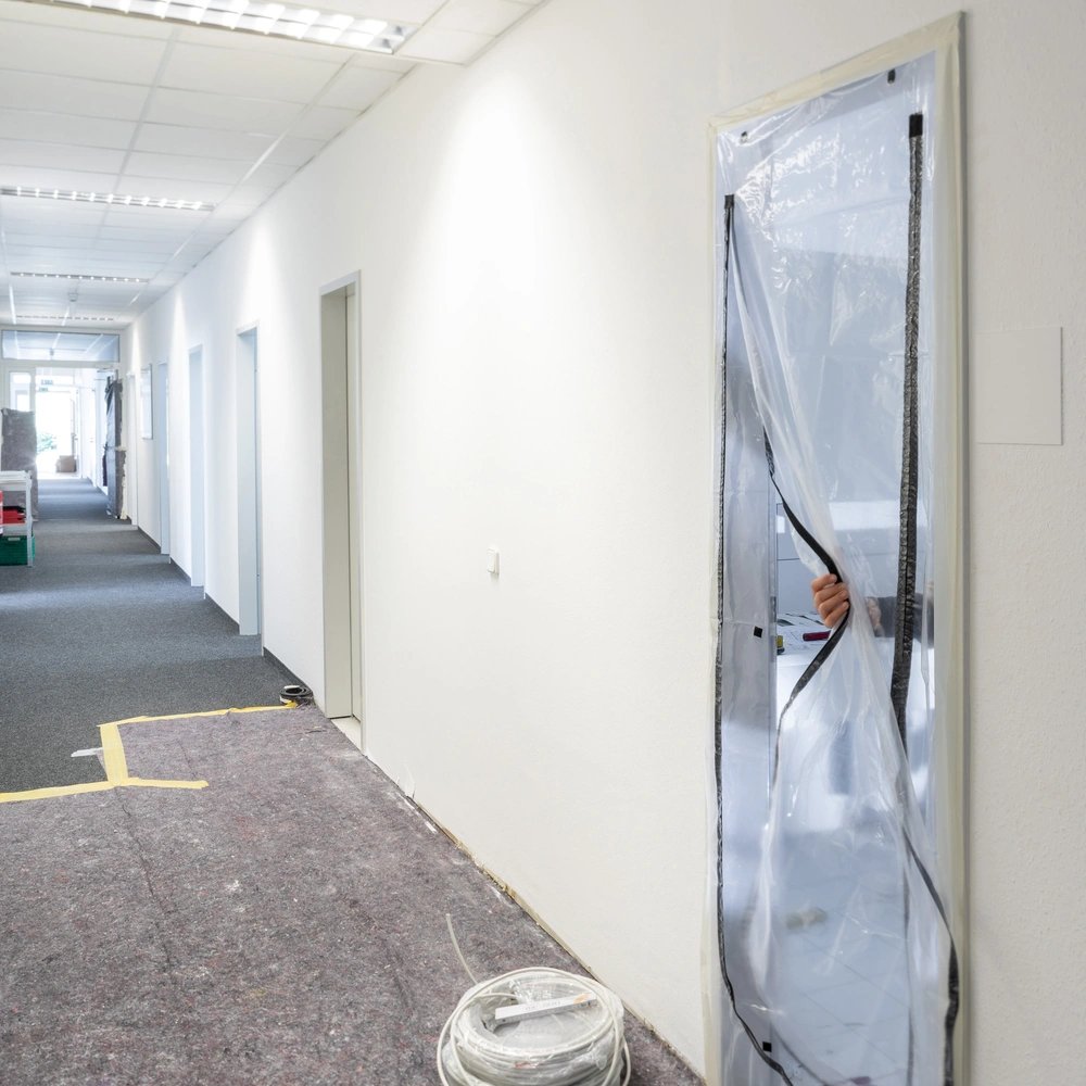 Alle ProduktinformationenDie Staubschutztür aus LDPE schützt bei Arbeiten im Innenbereich vor Staub und anderem Schmutz. Die Tür ist einfach zu montieren und durch einen Klettverschluss wiederverwendbar. Sie besitzt einen praktischen U-Ausschnitt und einen Reißverschluss.