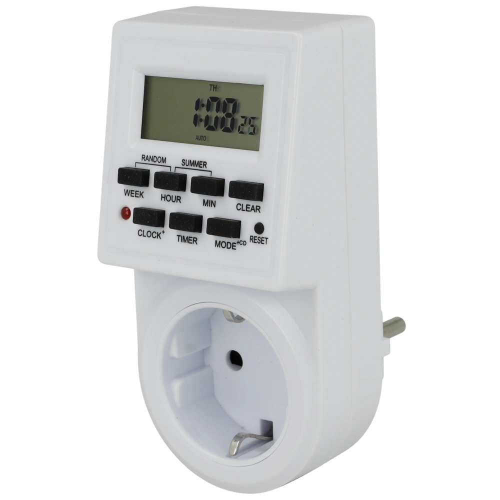 Digitale Stecker-Zeitschaltuhr mit LCD-Display. Es lassen sich Tages- und Wochenprogramme einrichten, oder der Zufallsgenerator für unregelmäßige Schaltungen nutzen. Bis zu 20 On/Off Programme sind an einem Tag programmierbar...