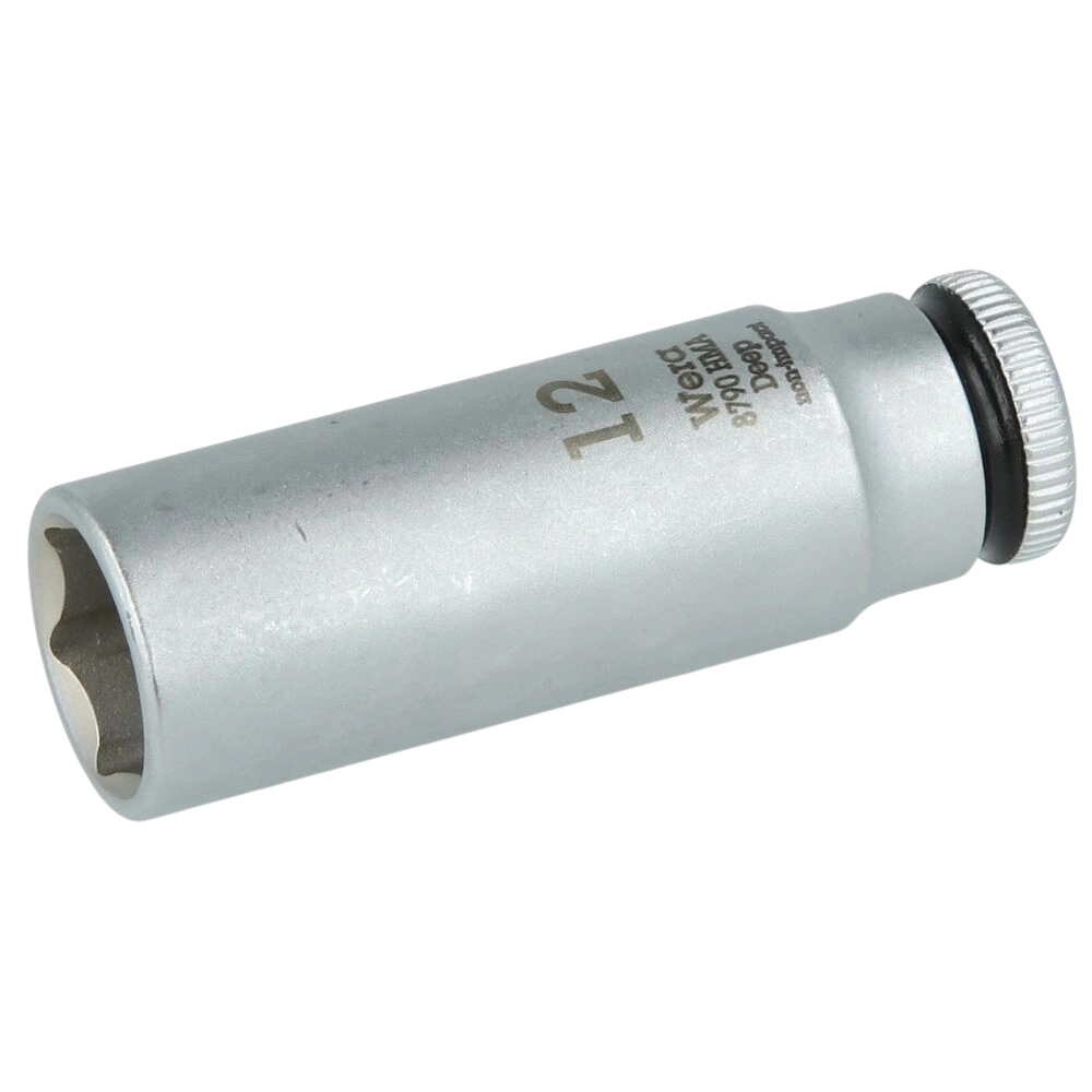 Der lange Hand- und Maschinensteckschlüsseleinsatz mit Kugelfangrille ist für tiefliegende Außensechskantschrauben und -muttern geeignet. Mit der Take it easy Werkzeugfinder-Farbkennzeichnung ist die richtige Größe schnell zur Hand. Außerdem verfügt der Schlüsseleinsatz über Rillen zum leichten Greifen auch mit öligen Händen.