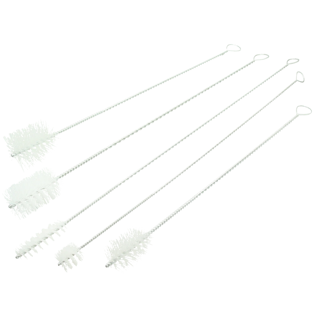 Stielbürsten-Set mit 3 Rundbürsten und 2 Rechteckbürsten aus gedrehtem Stahl mit Perlonborsten zur Reinigung von Heizkesseln mit empfindlichen Oberflächen.