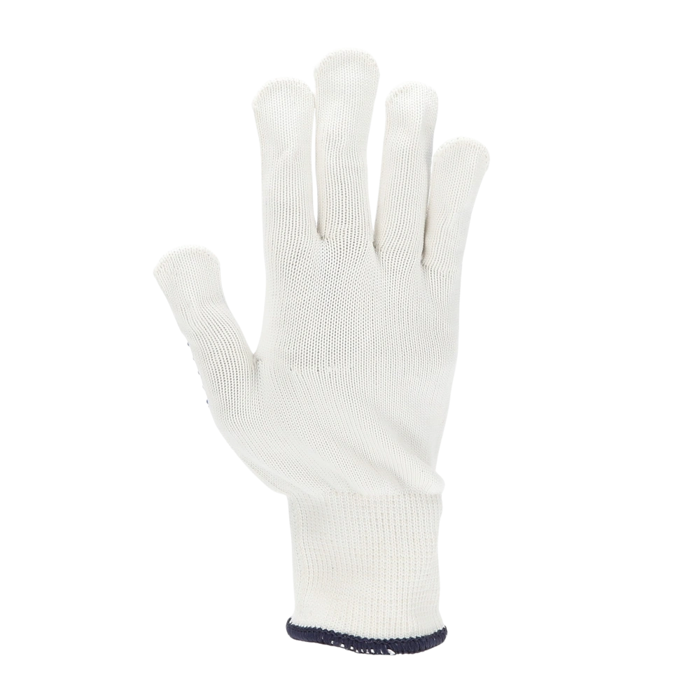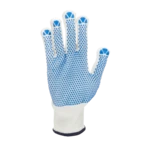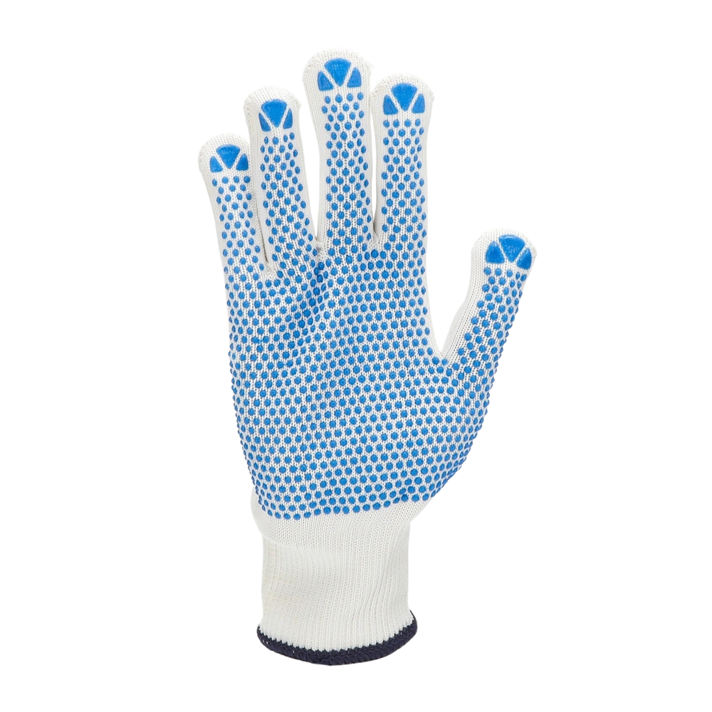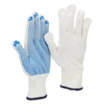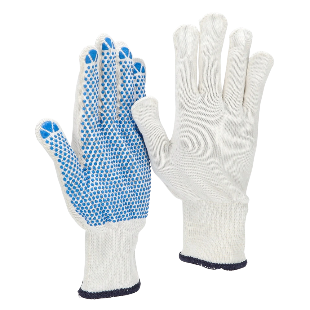 Arbeitshandschuhe aus Baumwoll- und Polyesterstrick mit PVC-Noppen auf der Handinnenfläche.