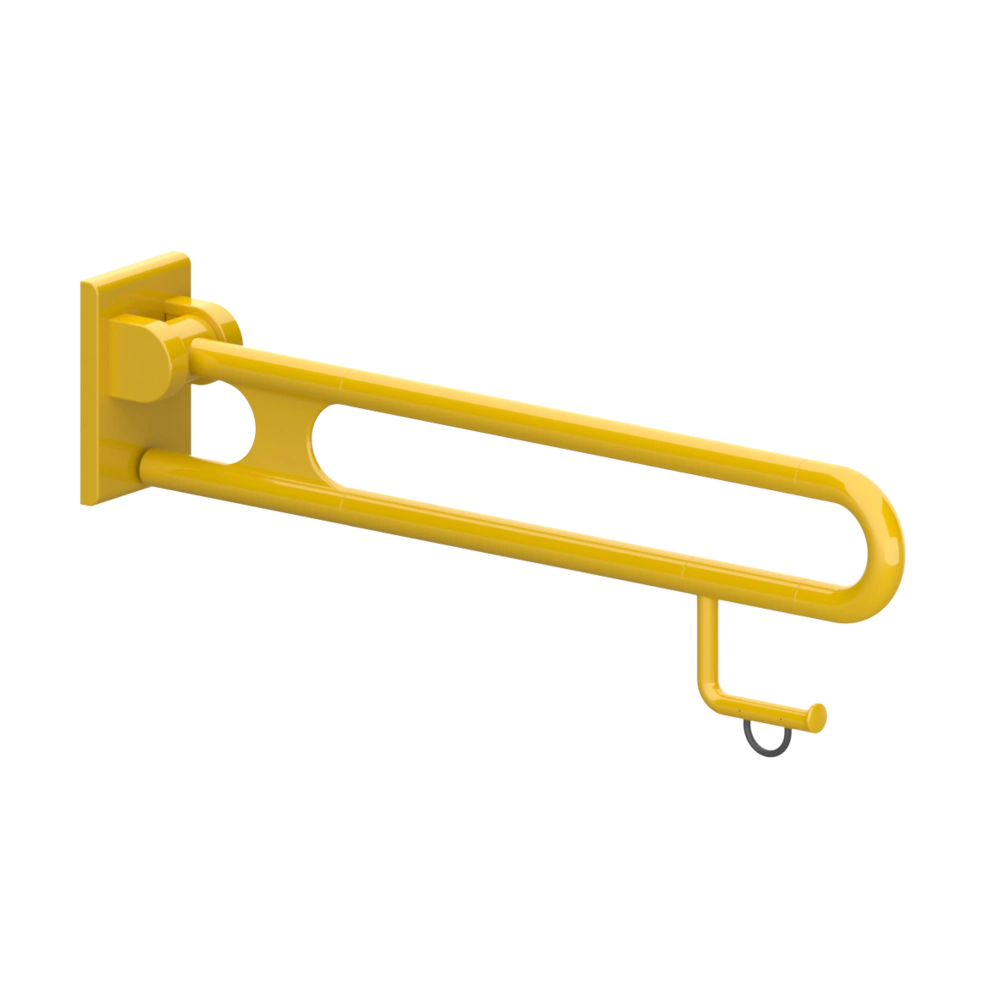 Alle Produktinformationen LieferumfangHochwertiger und massiver Stützklappgriff mit einstellbarer Bremse zur Montage im Sanitärbereich. Die Montageplatte zum Einhängen mit Dreipunktbefestigung wird hinter einer Abdeckung versteckt. Der Griff verfügt zusätzlich über einen Papierrollenhalten mit selbsteinstellbarer und wartungsfreier Abrollbremse.