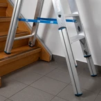 Robuste Aluleiter mit verstellbaren Holmverlängerungen für stabilen Stand auf Schrägen, Stufen und unebenen Untergründen. Jeder Holm lässt sich einzeln stufenlos einstellen. Damit ist ein fester...