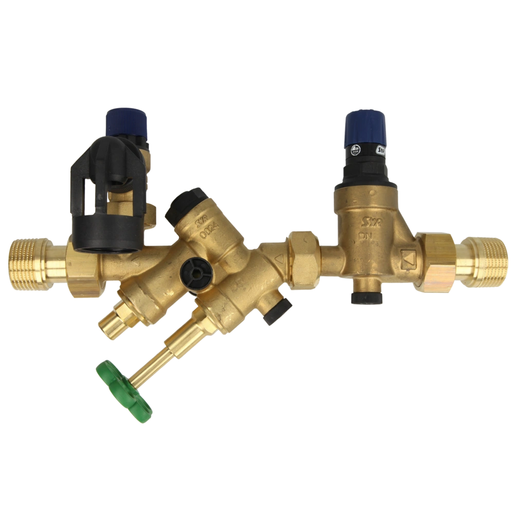 Sicherheitsgruppe mit integriertem Druckminderer zur Absicherung von geschlossenen Trinkwassererwärmern.