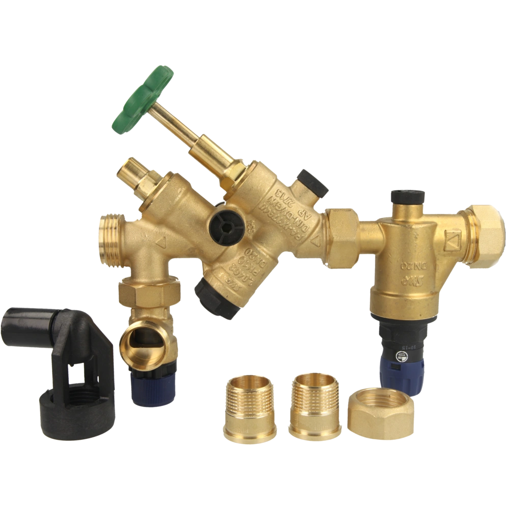 Sicherheitsgruppe mit integriertem Druckminderer zur Absicherung von geschlossenen Trinkwassererwärmern.