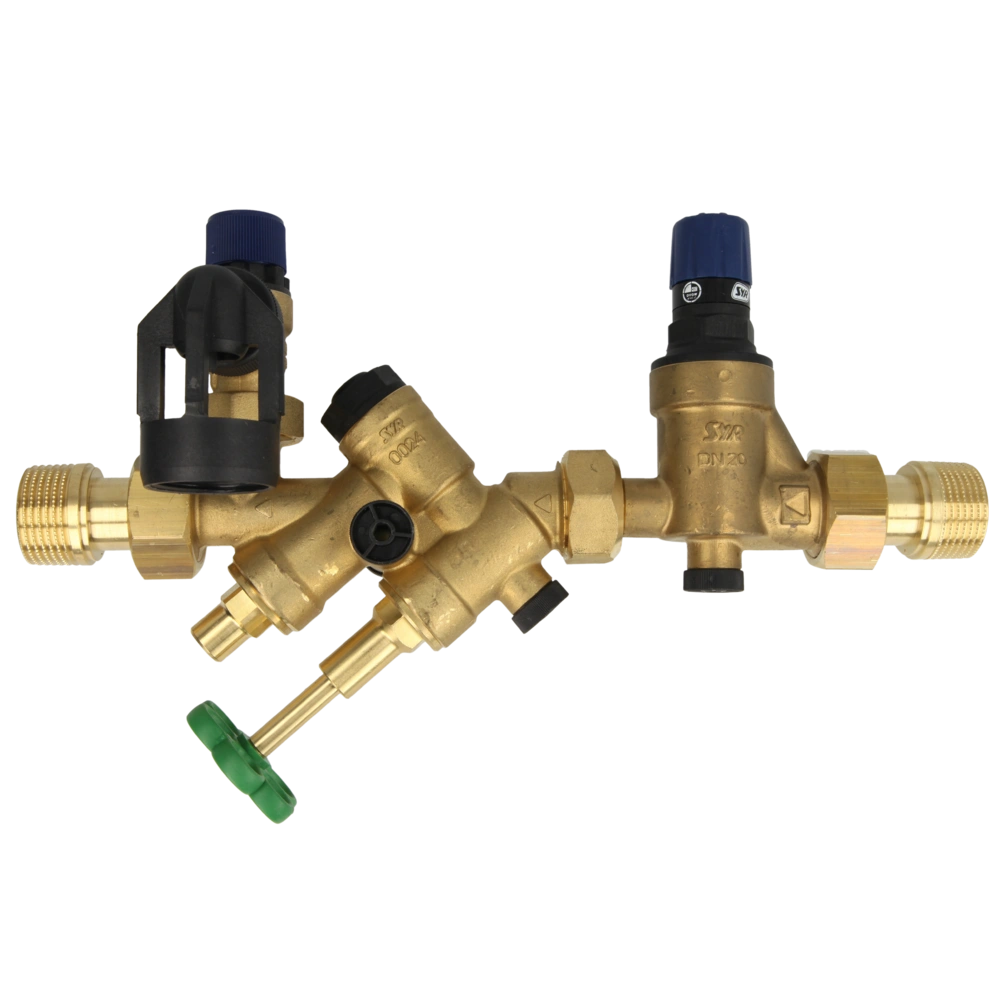 Sicherheitsgruppe mit integriertem Druckminderer zur Absicherung von geschlossenen Trinkwassererwärmern.