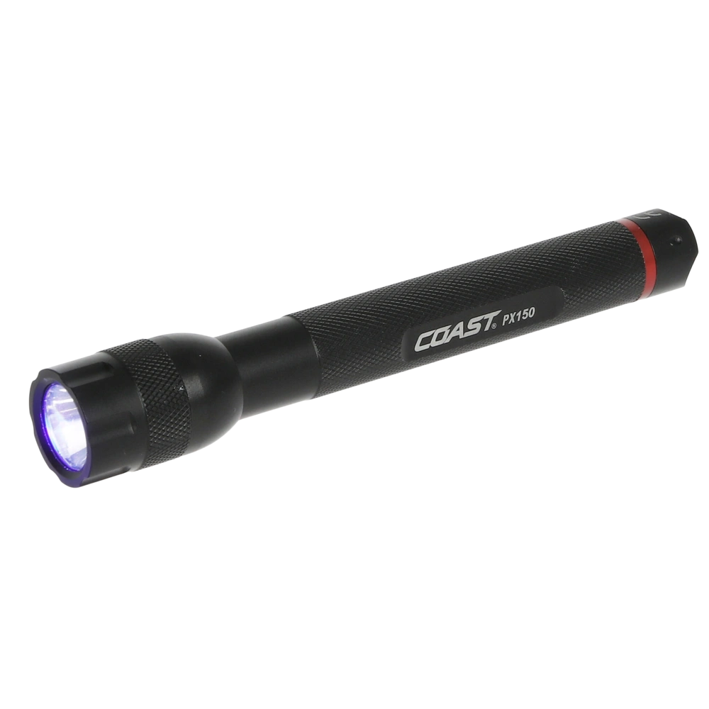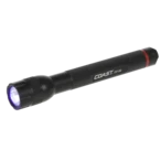 Batteriebetriebene UV-Licht-Taschenlampe mit 2 Helligkeitsstufen in einem stoßfesten und spritzwassergeschützten Aluminium-Gehäuse. Mit dem UV-Licht lassen sich Geldscheine oder Ausweise auf Echtheit überprüfen und Lecks sicher aufspüren.