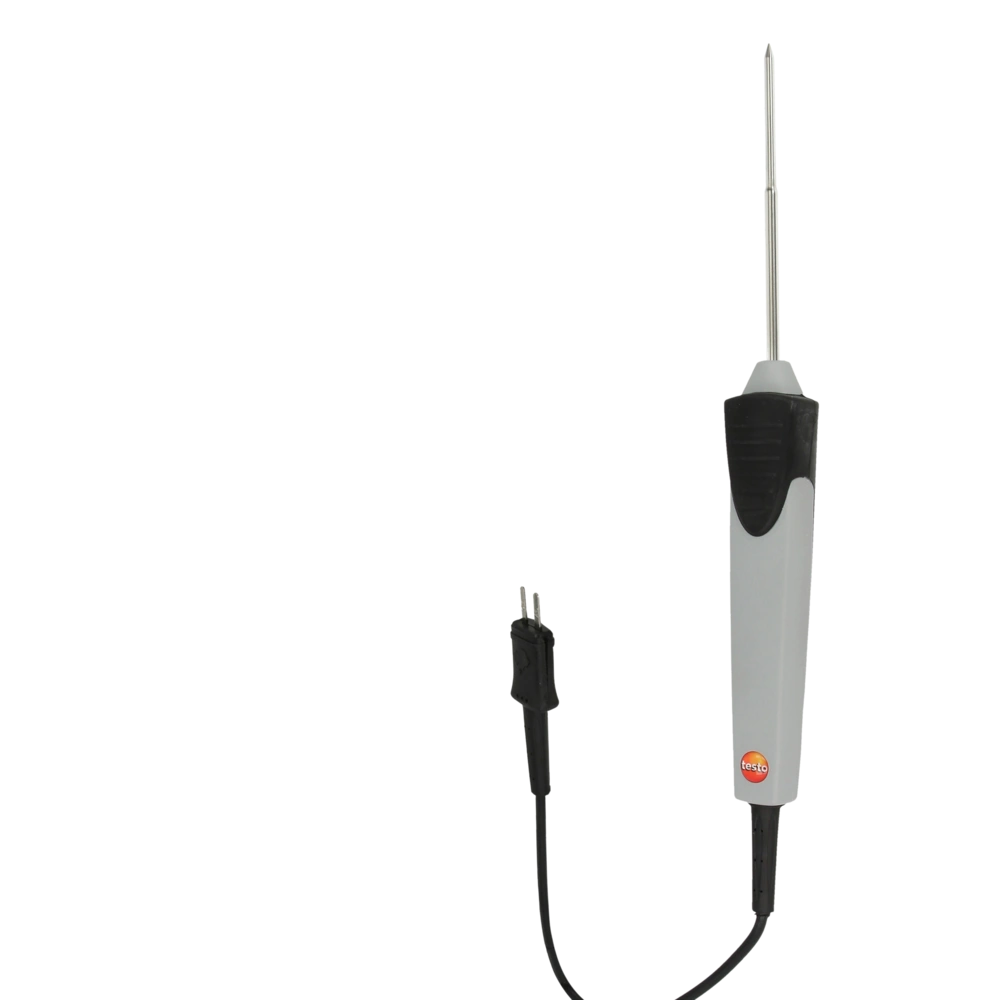Wasserdichter Tauch- und Einstechfühler zur schnellen Temperaturmessung in flüssigen und halbfesten Medien. Der Fühler mit fest angeschlossenem Kabel kann mit unterschiedlichen Testo Messgeräten verbunden werden.