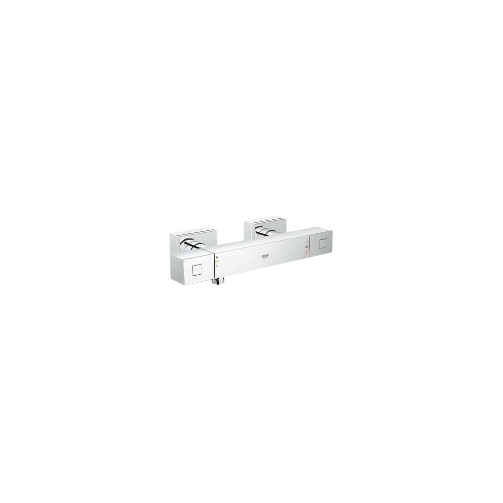Thermostat-Brausebatterie Grotherm Cube DN 15 mit integrierter Mischwasserabsperrung und eingebautem Rückflussverhinderer bietet folgende Eigenschaften: