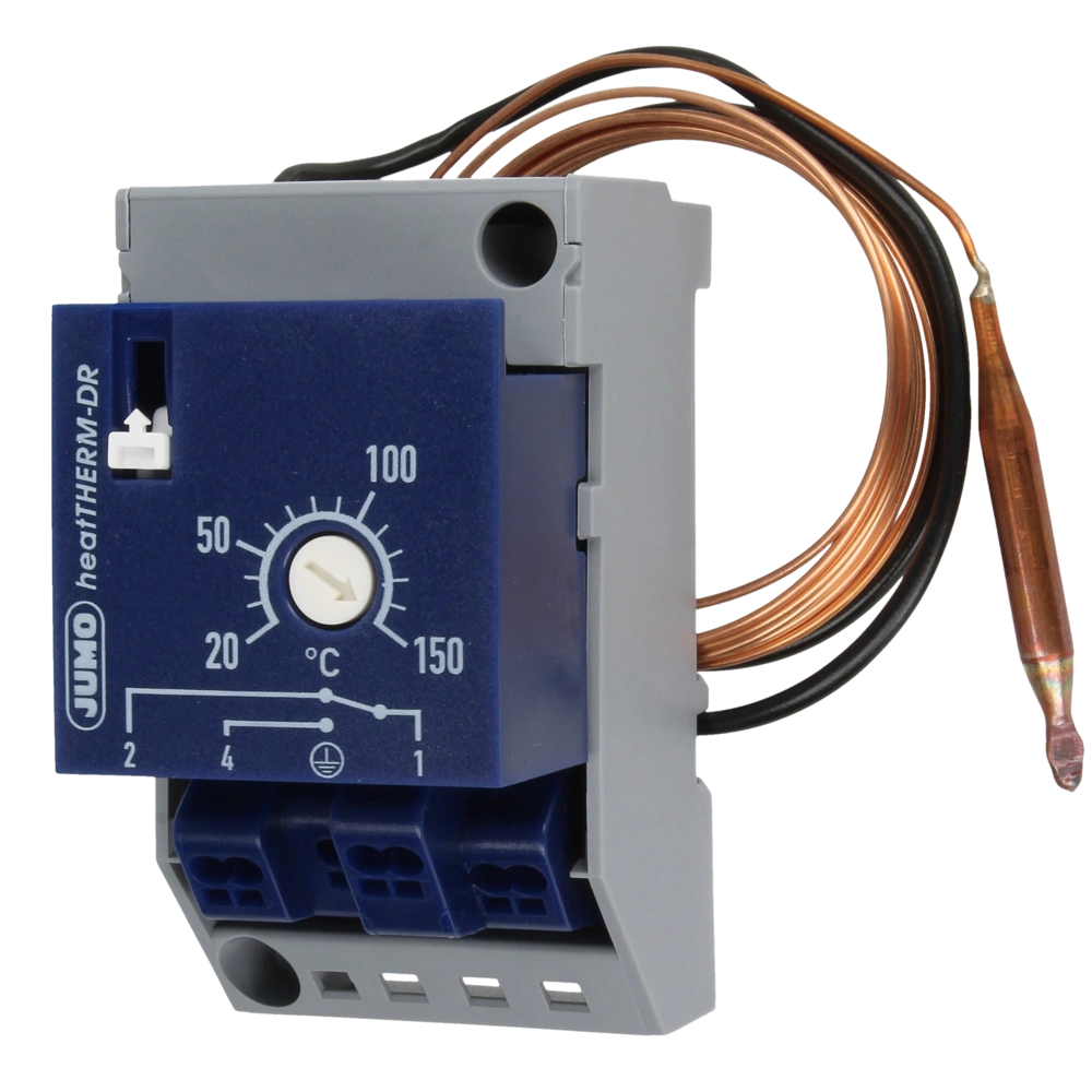 Sicherheitstemperaturbegrenzer für mittlere Temperaturen zur Hutschienen- oder Wandmontage.