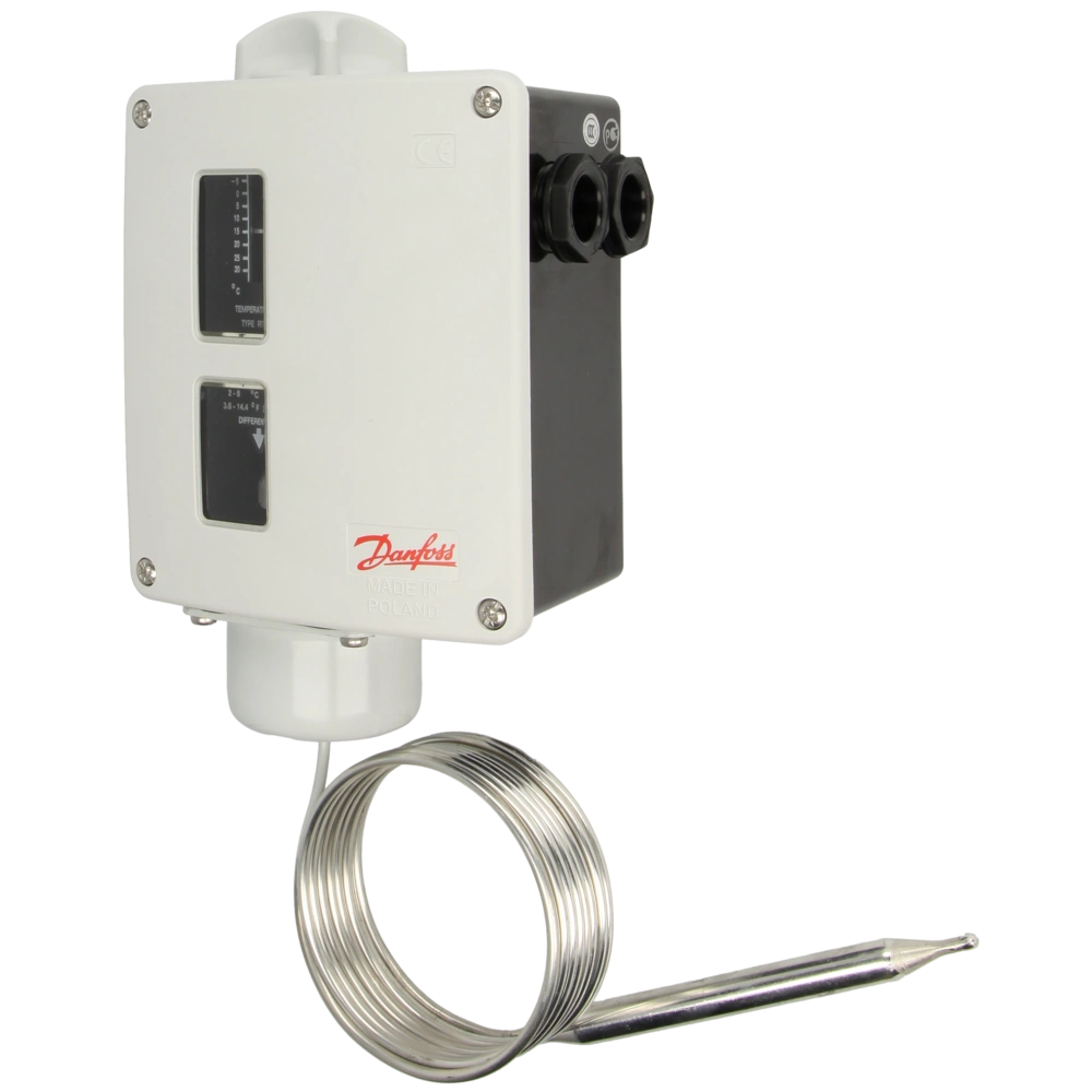 Alle ProduktinformationenFeuchtraum-Thermostat mit Kappilarfühler als Temperaturregler in schwer zugänglichen Bereichen. Mit Wechsel-Kontakt und einstellbarer Schaltdifferenz passt sich der mechanische Thermostat flexibel an verschiedenste HLK- oder Industrieanwendungen an. Dank Absorptionsfüllung bleibt das Gerät auch bei Temperaturschwankungen oder feuchter Umgebung schaltgenau.
