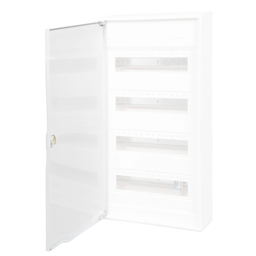 Tür aus pulverbeschichtetem Stahlblech für Aufputz-Kleinverteiler Kleinverteiler Volta Aufputz 4 x 12 PLEmit Türanschlag rechts oder links.