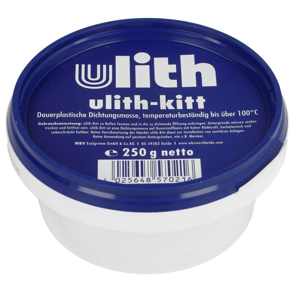 Alle ProduktinformationenDas Ulith-Kitt ist eine dauerplastische, knetbare Dichtungsmasse auf Kunststoffbasis. Es wurde für die Installation von Sanitäranlagen aller Art entwickelt und eignet sich besonders für das Einsetzen von Ablaufarmaturen in Waschtischen, Badewannen und Duschwannen. Plastic-Fermit bleibt immer plastisch und geschmeidig. Es verhärtet und versprödet nicht. Ein Platzen der Porzellanteile durch Wärmeausdehnung oder bei einer eventuell späteren Demontage ist ausgeschlossen.