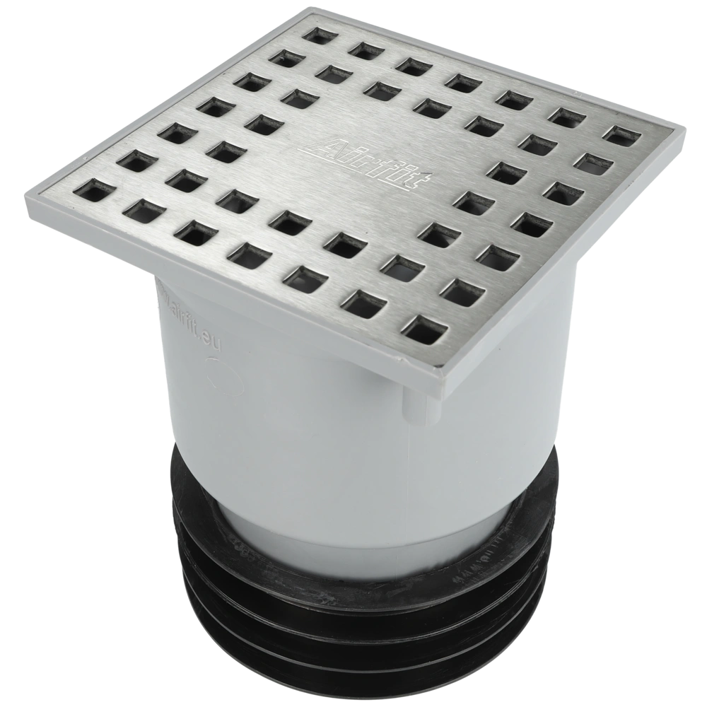 Universal-Bodenablauf mit 3 mm Edelstahlrost und Geruchsverschluss mit einer Sperrwasserhöhe von 50 mm. Er ist höhenverstellbar, drehbar und auch neigbar. Durch den Muffenanschluss und den Spitzendenanschluss ist er flexibel einsetzbar.