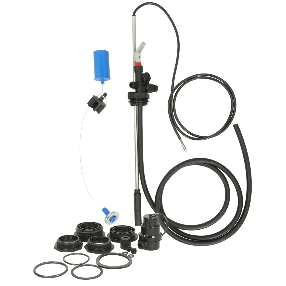 Universal-Tankentnahme Grundeinheit mit Grenzwertgeber für kommunizierende, einwandige Kunststoff-Batterietankanlagen aus PE/PA. Mit der zugehörigen Tankerweiterung können die Folgetanks angeschlossen werden...