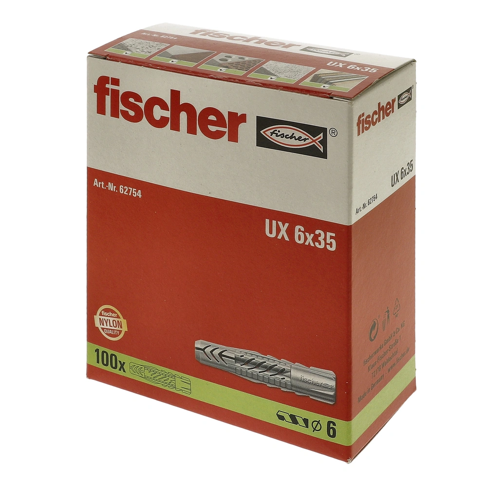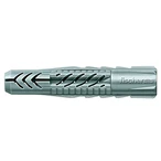 Universaldübel zur Durchsteckmontage für nahezu alle Baustoffe. Der Dübel verspreizt in Vollbaustoffen und verknotet sich in Hohl- und Plattenbaustoffen und sorgt dadurch für einen maximalen Halt. Die schrägen Verbindungsstege sorgen für eine optimale Schraubenführung. Durch seine sägezahnförmigen Verdrehsicherungen, dreht sich der Dübel im Bohrloch nicht mit, so wird die größtmögliche Montagesicherheit gewährleistet.