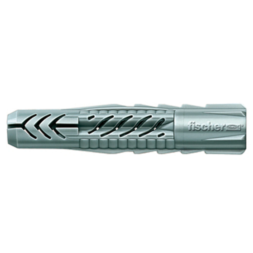 Universaldübel zur Durchsteckmontage für nahezu alle Baustoffe. Der Dübel verspreizt in Vollbaustoffen und verknotet sich in Hohl- und Plattenbaustoffen und sorgt dadurch für einen maximalen Halt. Die schrägen Verbindungsstege sorgen für eine optimale Schraubenführung. Durch seine sägezahnförmigen Verdrehsicherungen, dreht sich der Dübel im Bohrloch nicht mit, so wird die größtmögliche Montagesicherheit gewährleistet.