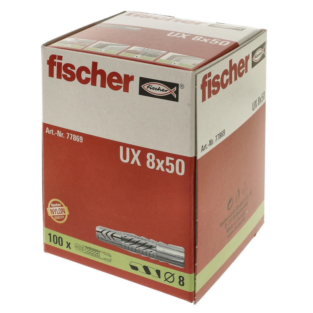 Universaldübel zur Durchsteckmontage für nahezu alle Baustoffe. Der Dübel verspreizt in Vollbaustoffen und verknotet sich in Hohl- und Plattenbaustoffen und sorgt dadurch für einen maximalen Halt. Die schrägen Verbindungsstege sorgen für eine optimale Schraubenführung. Durch seine sägezahnförmigen Verdrehsicherungen, dreht sich der Dübel im Bohrloch nicht mit, so wird die größtmögliche Montagesicherheit gewährleistet.