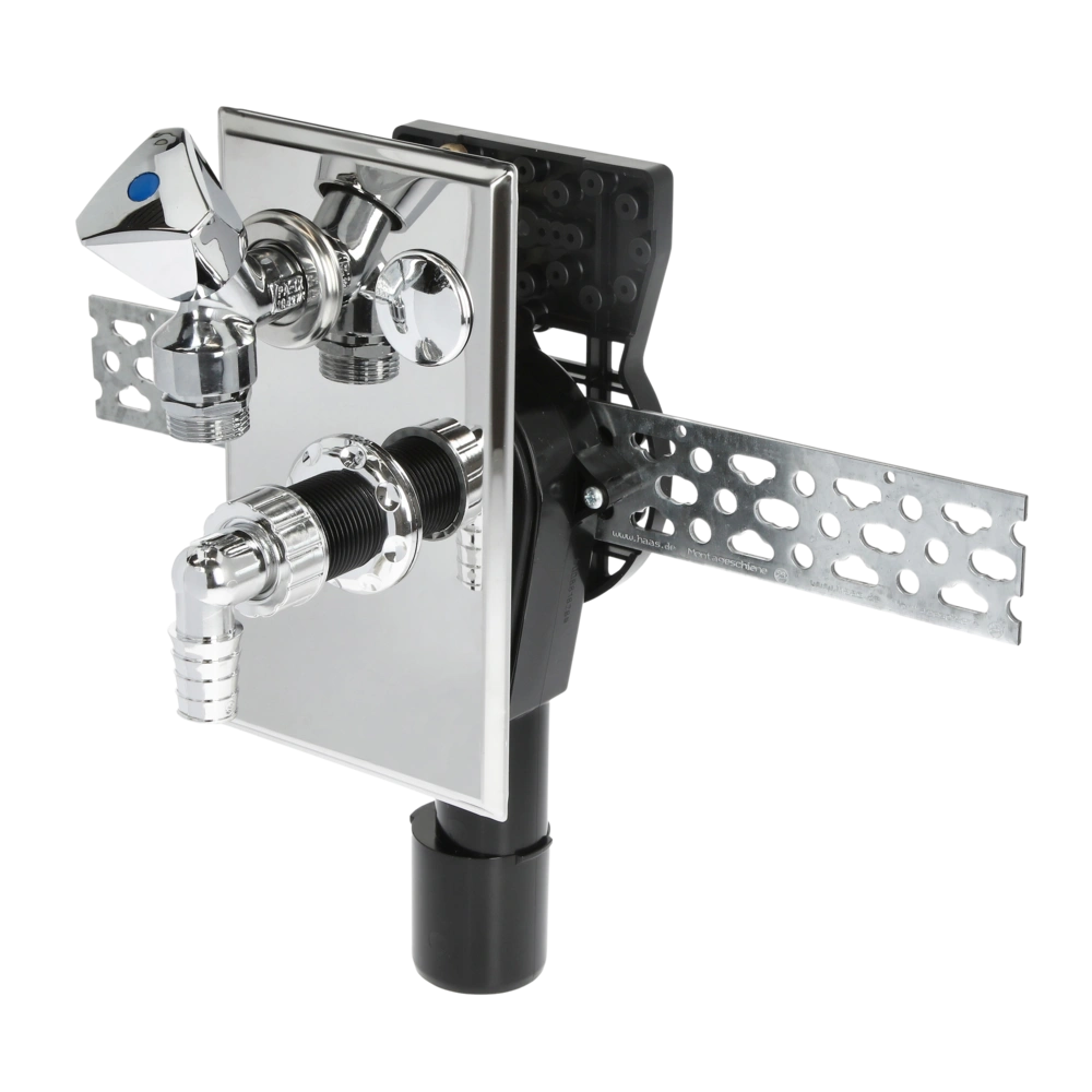 Rechts und links verwendbares Unterputz-Geräte-Siphon DN40/50 mit Reinigungsöffnung für die senkrechte Montage. Der Siphon besitzt eine integrierte Armaturenkombination mit Rückflussverhinderer...