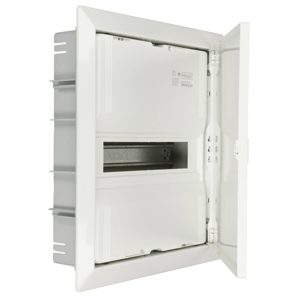 Alle Produktinformationen LieferumfangUnterputz-Kleinverteiler mit Kabeleinführungen an allen 5 Seiten. Große Anschlussräume mit reichlich Platz für eine noch komfortablere Installation. Die flache Facettenform des Stahlrahmens mit Pulverbeschichtung fügt sich harmonisch in jede Wohnsituation ein. Die integrierten Lüftungsöffnungen sorgen für eine Zirkulation und Abführung der Verlustwärme.
