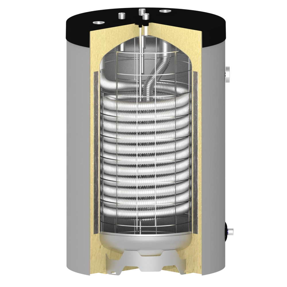 Premium Unterstell-Frischwasserspeicher für höchste Ansprüche an Trinkwasserhygiene und Energieeffizienz. Das eingebautes Edelstahlwellrohr trennt das Trink- vom Heizwasser und dient gleichzeitig als leistungsstarker Wärmetauscher...