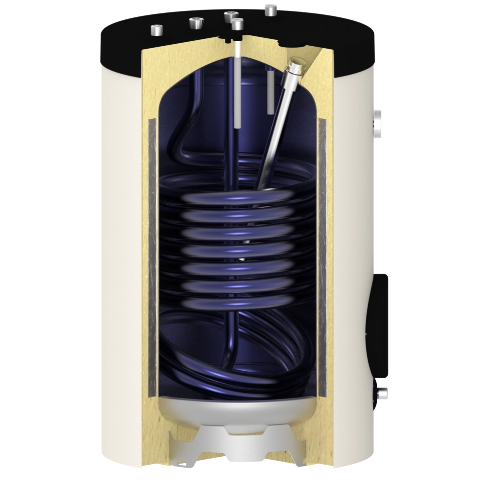 Le réservoir est en acier S235JR émaillé, l'echangeur est en acier S235TR1.