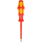 VDE-isolierter, stückgeprüfter Kreuzschlitzschraubendreher für sicheres Arbeiten bis 1000 V gemäß IEC 60900. Der ergonomische Kraftformgriff besitzt harte Zonen für hohe Arbeitsgeschwindigkeiten...