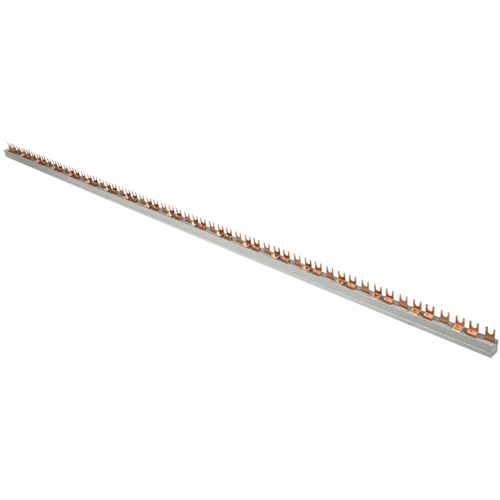 Die Phasenschiene mit Dreileitersystem ist zur einfachen und schnellen Einspeisung von Sicherungsautomaten. Die Länge kann beliebig gekürzt werden. Nach dem Kürzen einfach die Schienenenden durch