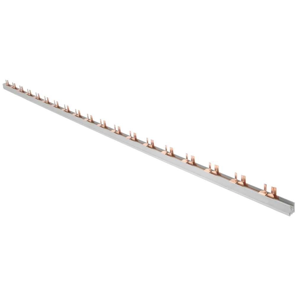 Die Phasenschiene mit Dreileitersystem ist zur einfachen und schnellen Einspeisung von Sicherungsautomaten. Die Länge kann beliebig gekürzt werden. Nach dem Kürzen einfach die Schienenenden durch