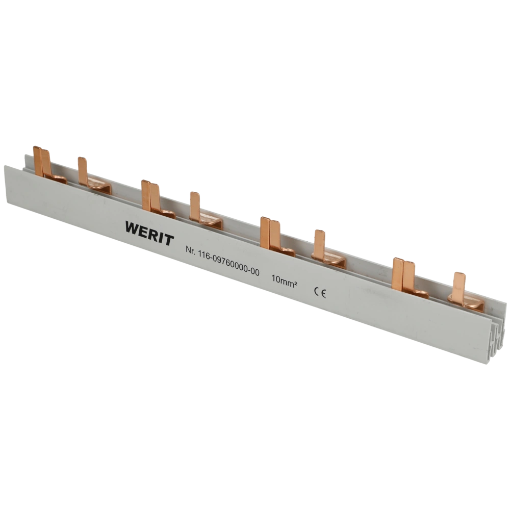 Die Phasenschiene mit Dreileitersystem ist zur einfachen und schnellen Einspeisung von Sicherungsautomaten. Die Länge kann beliebig gekürzt werden. Nach dem Kürzen einfach die Schienenenden durch