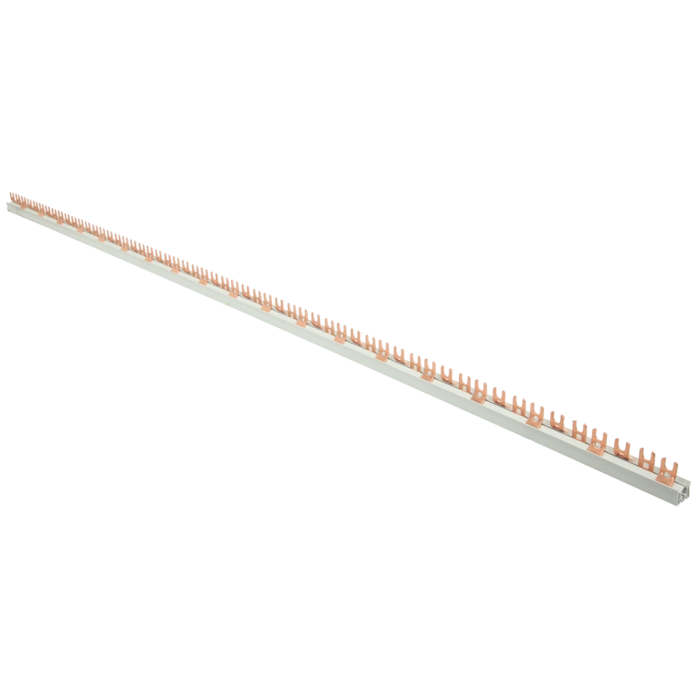 Die Phasenschiene mit Dreileitersystem ist zur einfachen und schnellen Einspeisung von Sicherungsautomaten. Die Länge kann beliebig gekürzt werden. Nach dem Kürzen einfach die Schienenenden durch