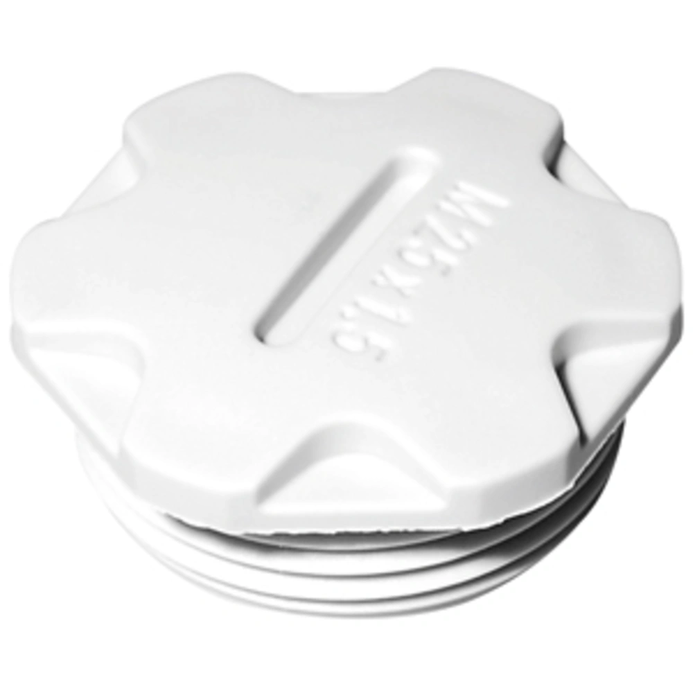 Verschlussschraube aus Polyamid mit metrischem Anschlussgewinde und Dichtring. Das Material ist glasfaserverstärkt, flammgeschützt und halogenfrei.