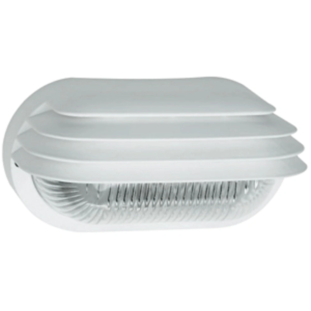 Wandleuchte Optima 2 oval besteht aus schlagsicherem Kunststoff IK06 und besitzt eine Glocke aus Kunststoff mit prismatic Optik.