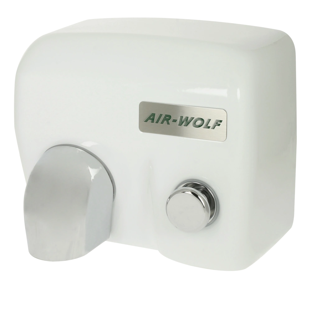 Der Warmluft-Händetrockner mit Druckknopf verfügt über eine Diebstahlsicherung und eine 4-Punkt-Verschraubung. Er ist besonders für unbeaufsichtigte, öffentlich zugängliche Waschräume geeignet.