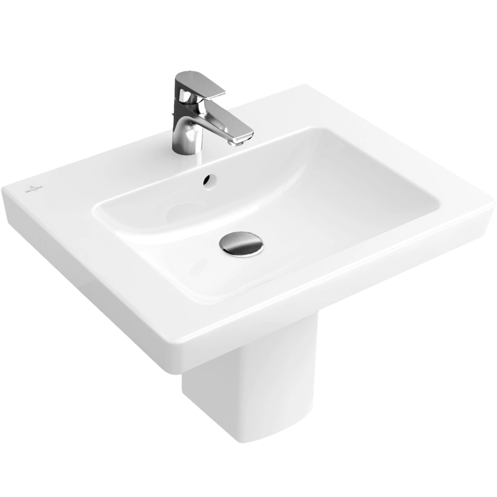 Hochwertiger Waschtisch in modernem Design für die wandhängende Montage. Der Waschtisch ist mit Überlauf und durchgestochenem Hahnloch ausgestattet und auch für 3-Loch-Armaturen geeignet. Die schmutzabweisende Oberfläche mit CeramicPlus-Beschichtung lässt sich besonders einfach reinigen.