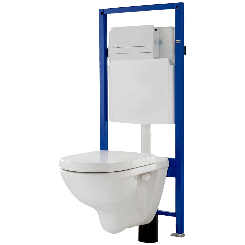 Paketinhalt und weitere Informationen LieferumfangKomplettset mit Tiefspül-WC, WC-Sitz und selbsttragendem Wand-WC-Element. Der WC-Sitz ist mit einer SoftClosing Absenkautomatik ausgestattet. Das Wand-Element besitzt einen Spülkasten mit 2-Mengen-Spültechnik. Zum Set gehört auch die passende Betätigungsplatte.