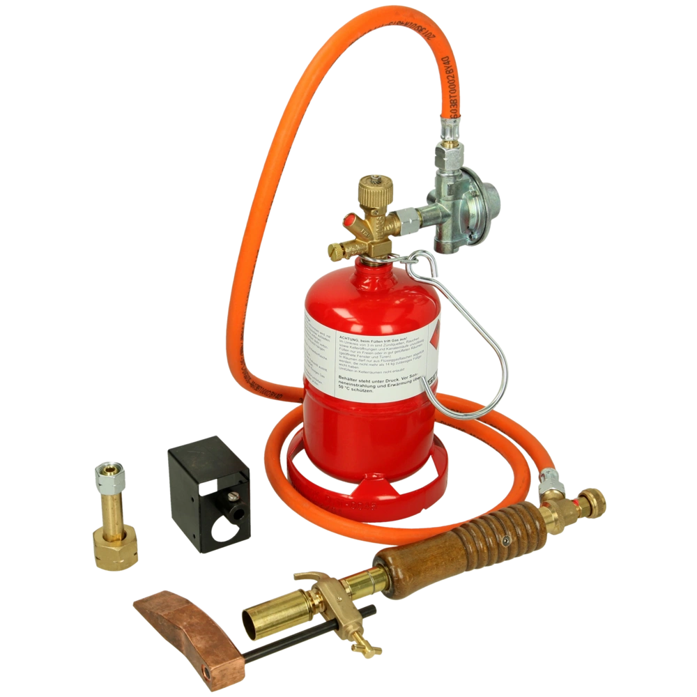Dieses Weichlöt-Set mit Mitteldruckregler eignet sich für unterschiedlichste Weichlöt-Anwendungen, besonders z. B. Dachrinnen. Ausgeliefert werden hochwertige Produkte von langer Lebensdauer im praktischen Umkarton.