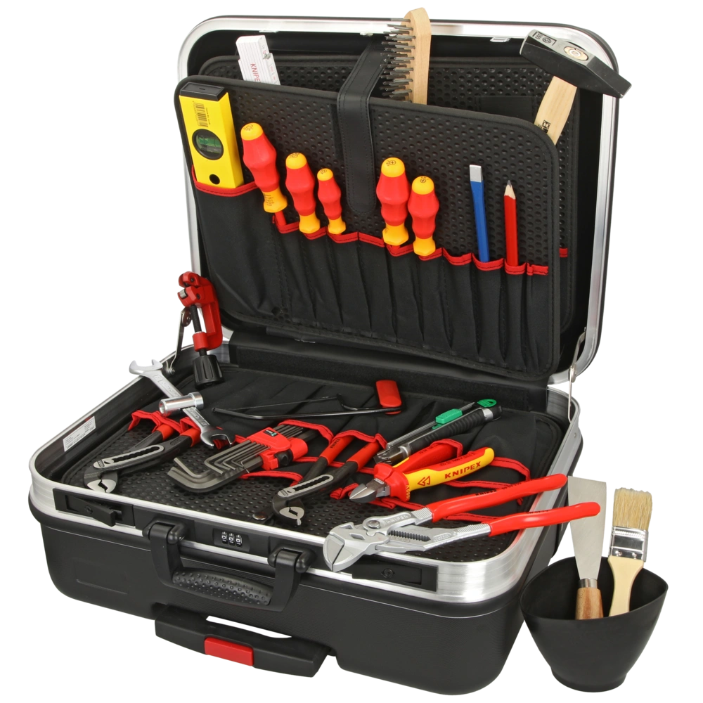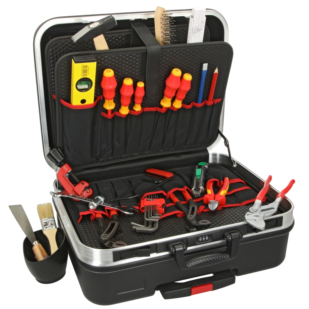 Werkzeugkoffer BIG Basic Move mit 31 qualitativ hochwertigen Markenwerkzeugen für den täglichen Einsatz im Sanitär-, Heizungs- und Klimabereich. Die Werkzeuge für Arbeiten unter Spannung sind VDE-geprüft nach DIN EN 609000...