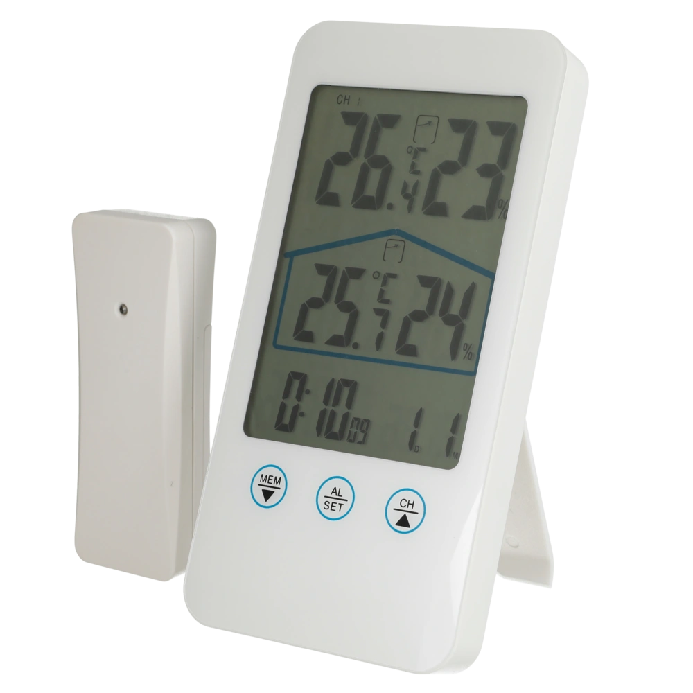 Bei dieser Wetterstation können Sie dank des übersichtlichen Displays ganz leicht mit einem Blick die Innen- und Außentemperatur, die Luftfeuchtigkeit innen und außen sowie das Datum und die Uhrzeit ablesen. Die Basiseinheit kann an der Wand befestigt oder mit der Tischstütze aufgestellt werden.
