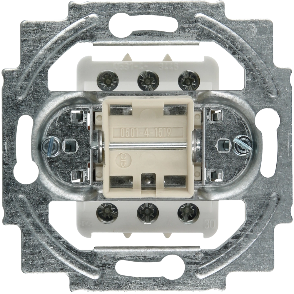 3-poliger Wippschalter-Einsatz mit Schraubklemmen für Ausschaltungen zur Unterputz-Installation.